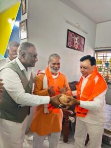 खरगोन: माननीय उपमुख्यमंत्री श्री जगदीश देवड़ा जी ने अपने खरगोन प्रवास के दौरान प्रतिष्ठित ज्योतिषाचार्य डॉ. बसंत सोनी जी के निवास पर पधारे। इस अवसर पर ज्योतिषाचार्य डॉ. बसंत सोनी जी ने उनका तथा उनके साथ जिला अध्यक्ष सहित सभी सद्सियो का सम्मान किया l
